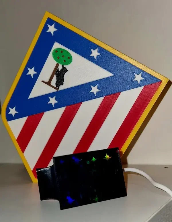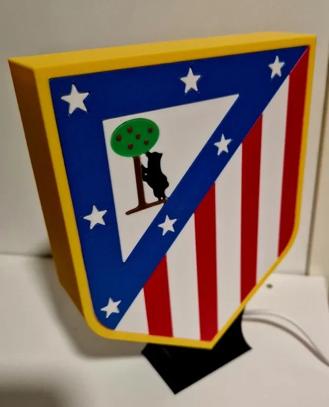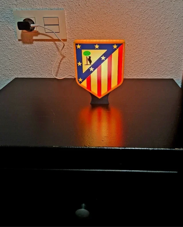 Ilumina tu espacio con estilo y pasión con esta lámpara LED inspirada en el escudo del Atlético de Madrid. Su diseño detallado y colores vibrantes la convierten en el complemento perfecto para cualquier aficionado.